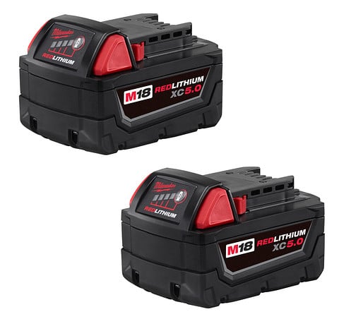 Juego de 2 baterías de ion de litio M18™ REDLITHIUM™ XC 5.0 Ah. Capacidad extendida para mayor productividad. Electrónica de protección avanzada para mayor vida útil. Compatible con todas las herramientas M18™.