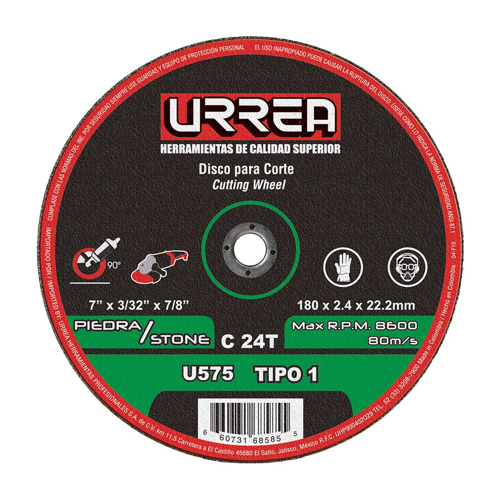 Disco Abrasivo Tipo 1 Para Piedra 7X3/32″ Extra Pesado Urrea U575