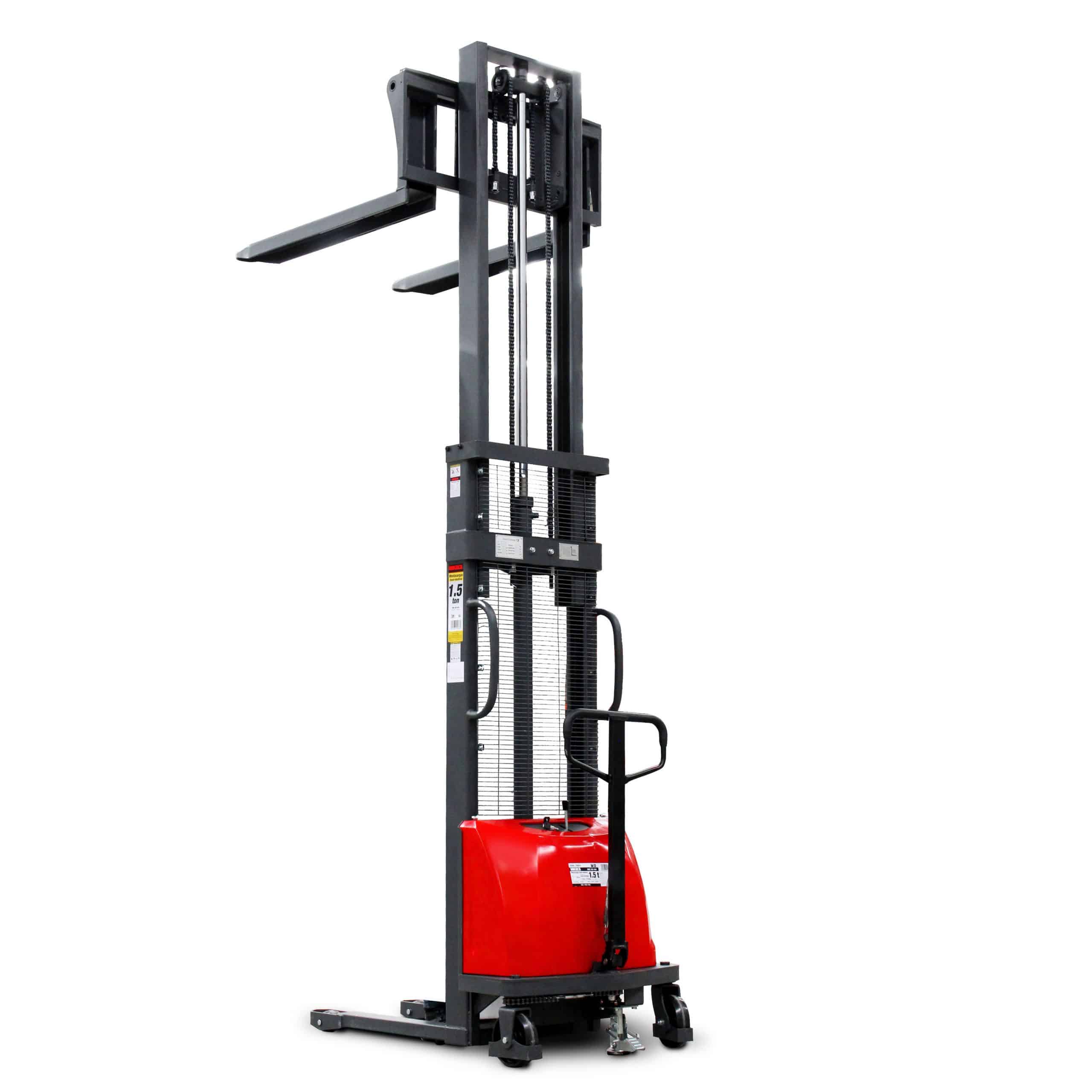 Elevador semi-eléctrico de 1.5 ton con sistema de carga de batería integrado.