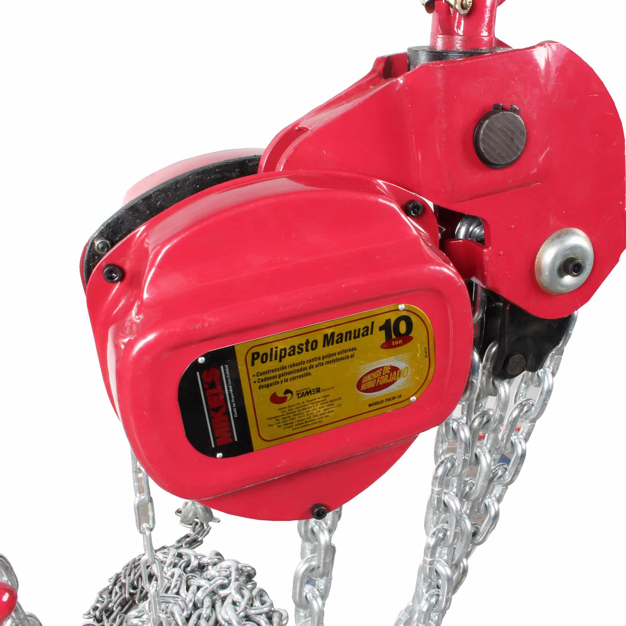 – Su estructura reforzada y cadena de alta resistencia aseguran un desempeño confiable en las maniobras de carga más críticas de la industria pesada.