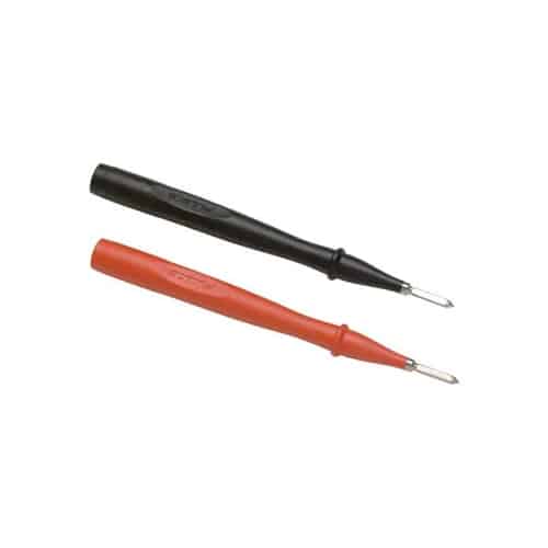 Un par (rojo, negro) de sondas de prueba de cuerpo delgado, para uso en bornes de conexión con poco espacio o de difícil acceso